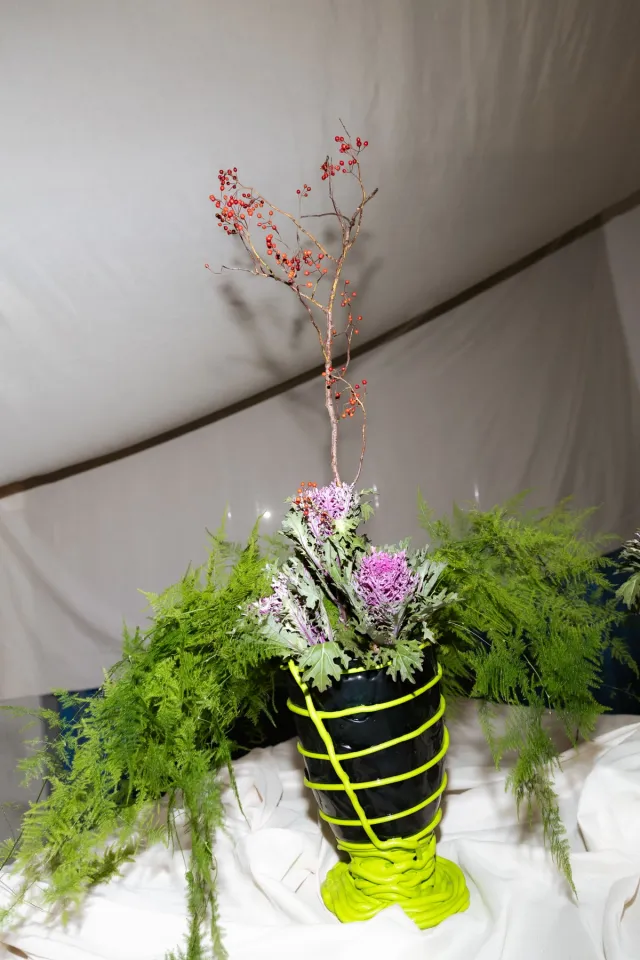 DOPO? è più di un coworking: è un organismo condiviso, un laboratorio sociale che riunisce realtà come Carlotta Franco, Salvatore Peluso, Bianca Felicori, PLSTCT e Fosbury Architecture. È nato dal desiderio di superare la cultura competitiva del lavoro milanese per recuperare l’importanza del confronto, della comunità, di una pratica quotidiana che si avvicina alle “istituzioni radicali” di cui parla Carlotta Franco. Un ecosistema in cui il progetto è sempre corale. In questo contesto, la nostra collaborazione con Parasite 2.0 ha preso forma attraverso un allestimento su misura e una serata sospesa nelle vibrazioni nostalgiche di Balera80. Spirits e ricette inedite hanno accompagnato gli ospiti in un percorso sensoriale che attraversava colori, profumi e combinazioni inattese. I centrotavola di Eremo Design Archive, le piante di Clinica Botanica e le sedie di Iacopo Costanzo e Niccolò Giordano hanno creato uno scenario in cui ogni dettaglio diventava un frammento di racconto.